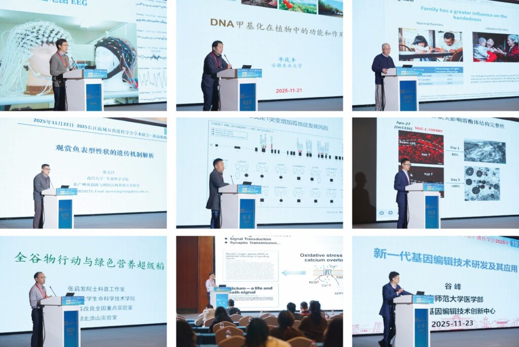 2025年11月21日-24日,由湖南省遗传学会、湖北省遗传学会、安徽省遗传学会、江西省遗传学会、重庆市遗传学会共同主办的长江流域五省(市)遗传学会 2025年学术联会在湖南衡阳召开。湖南省遗传学会理事长夏昆教授,安徽省遗传学会理事长蔡永萍教授、名誉理事长林毅教授,江西省遗传学会理事长邹国兴研究员,湖北省遗传学会名誉理事长何光存教授、熊立仲教授等五省市遗传学会主要负责人,50余所高校、科研院所、医院的300余名遗传学科研、教学人员和研究生参加本次会议。